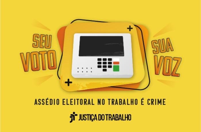 Imprimir Participe da campanha “Seu voto, sua voz – Assédio eleitoral no trabalho é crime”. Imagem figurativa do lema ”Seu voto, Sua voz” que fala sobre a questão do assédio eleitoral no trabalho ser crime 09/09/2024 – Promover ações de combate ao assédio eleitoral no ambiente de trabalho durante as eleições municipais de 2024. Esse é […]