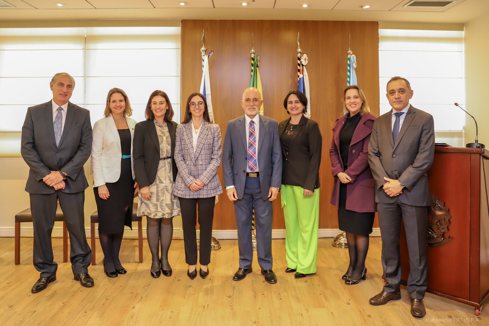Participaram da cerimônia, realizada no Salão Nobre da Presidência, o procurador seccional federal em Campinas, Lael Rodrigues Viana, a subprocuradora regional federal da 3ª Região, Maria Carolina Siqueira Primiano Muarrek, a chefe de Gabinete da PRF3, Elda Garcia Lopes Migliacci e a coordenadora da Equipe Regional da Matéria Administrativa da 3ª Região, Eliana Gonçalves Silveira. Pelo TRT-15, prestigiaram o evento os desembargadores Ana Paula Pellegrina Lockmann, Renan Ravel Rodrigues Fagundes, Fábio Bueno de Aguiar (representando o Núcleo Permanente de Métodos Consensuais de Solução de Disputas – Nupemec) e Marcelo Garcia Nunes. Também estiveram presentes o juiz Sérgio Polastro Ribeiro, presidente da Associação dos Magistrados da Justiça do Trabalho da 15ª Região (Amatra XV), e os juízes auxiliares Daniela Macia Ferraz Giannini (Presidência) e Guilherme Guimarães Feliciano (VPJ), entre outras autoridades.